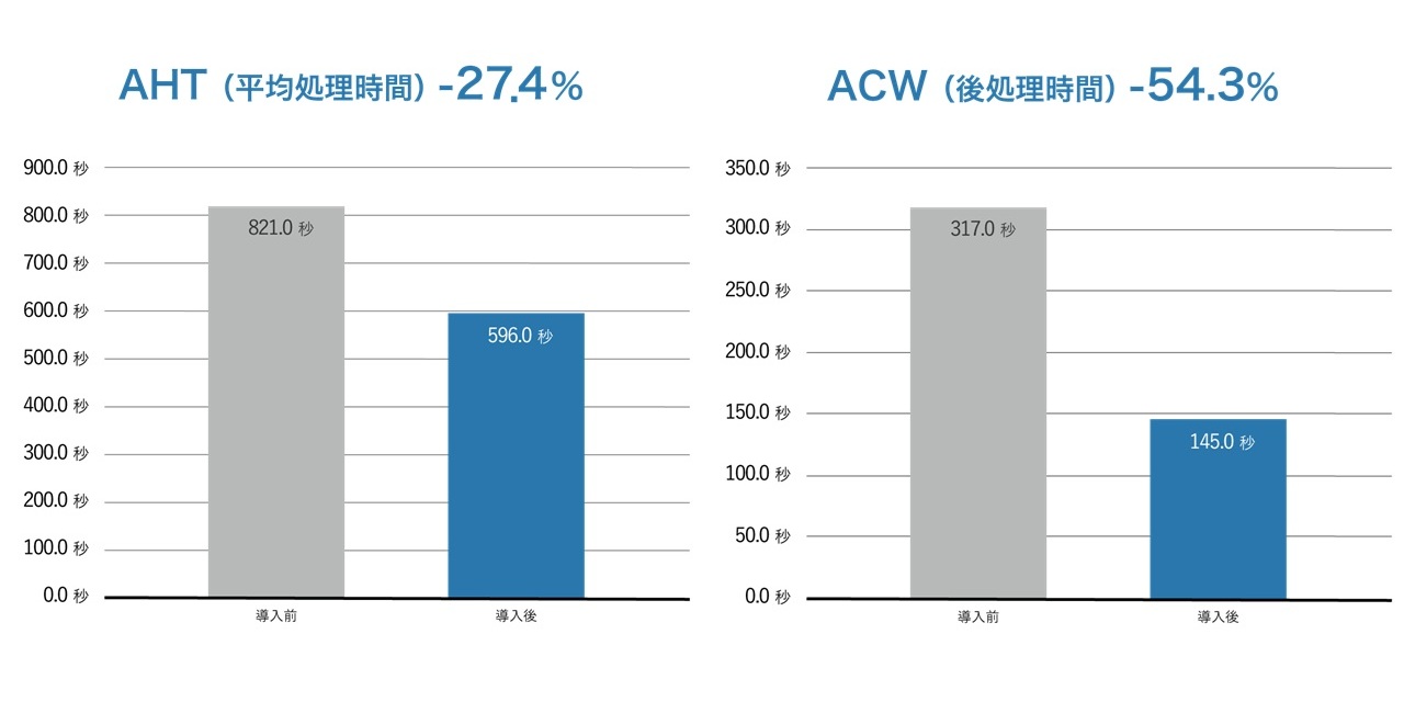 AHT(平均処理時間)-27.4% | 導入前:821秒 → 導入後:596秒